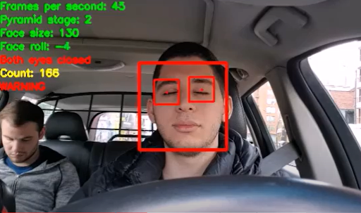 A possible danger if detected will caution the driver, possible dangers could include heuristics as well non heuristic behaviors, anything from blinking their eyes more frequently as an attempt to focus back on the road ahead, moving their head to refocus their eyes, or pulling over until the driver is fully awake again.
