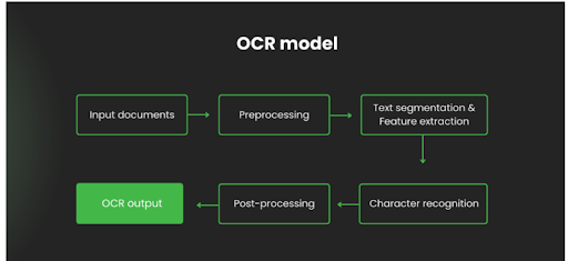 Preprocessing, Character Identification & Feature Extraction, Post Processing are the steps used in any OCR. A sample flow chart for a 6 step OCR classification process is shown